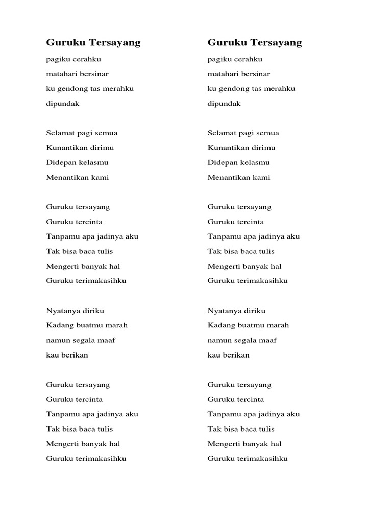 Lirik Lagu Guruku Tersayang Guruku Tercinta Pdf